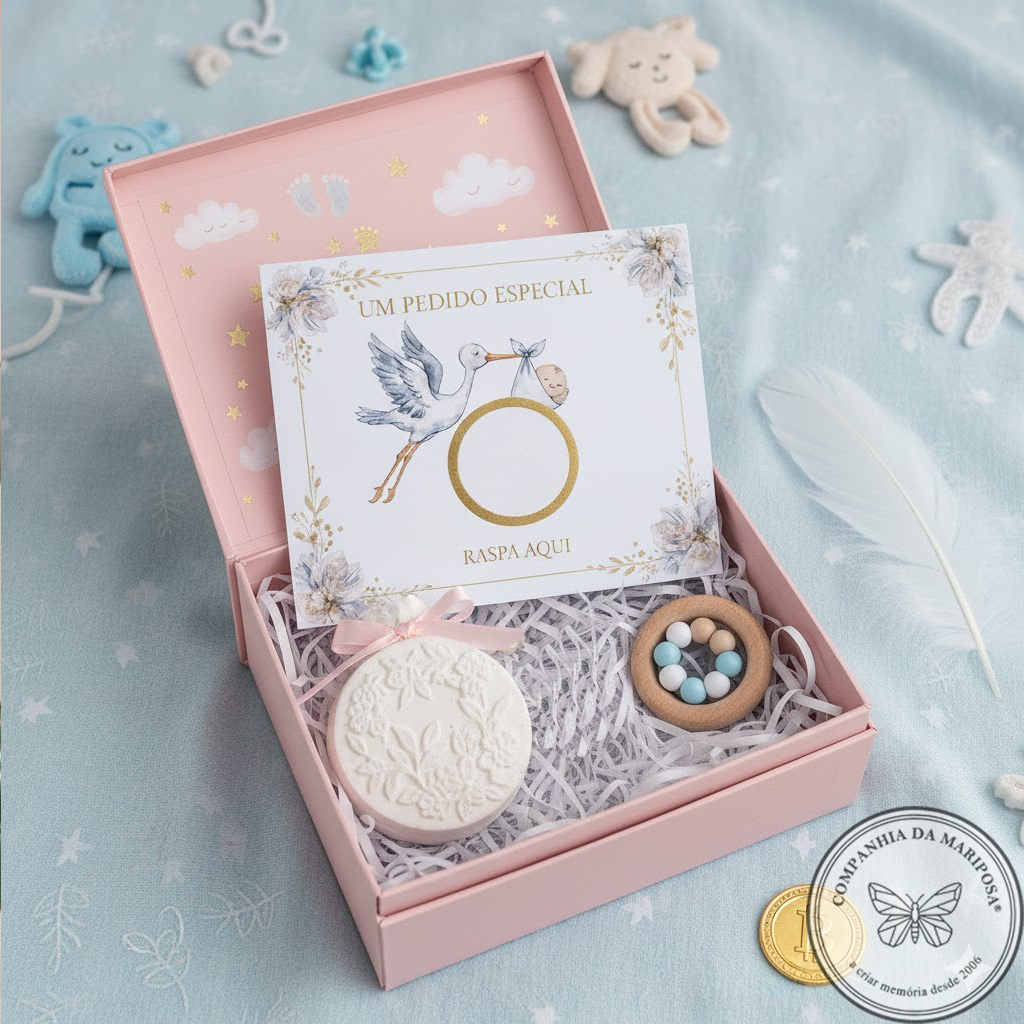 A nossa Caixa Pedido Padrinhos Menina combina ternura e surpresa: