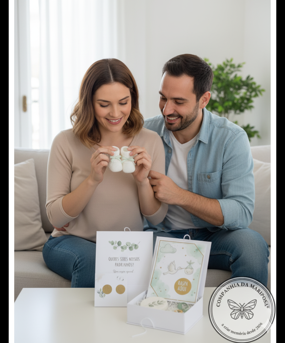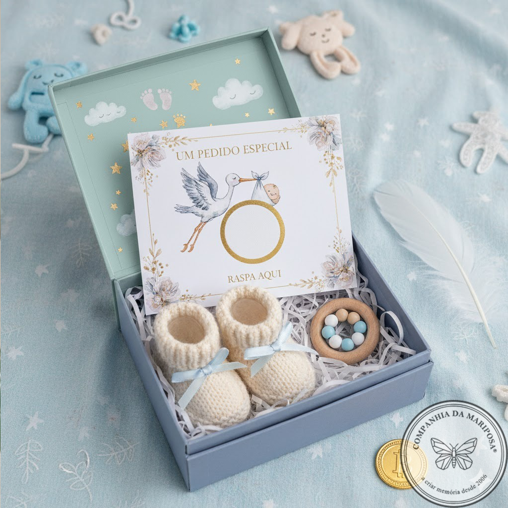 A nossa Caixa Pedido Padrinhos Menino combina ternura e surpresa: