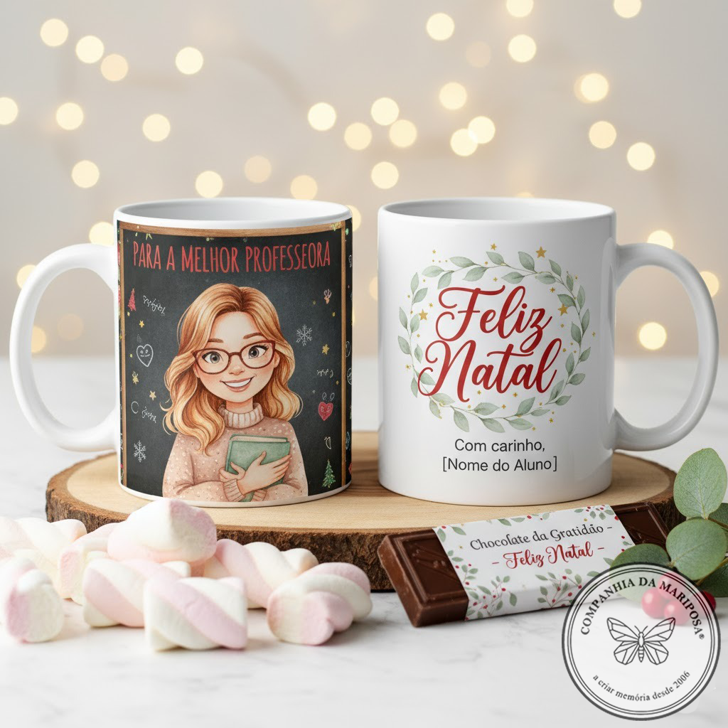 Ofereça um presente que a Professora vai usar todos os dias! Esta caneca é a forma mais carinhosa e útil de desejar um Feliz Natal.